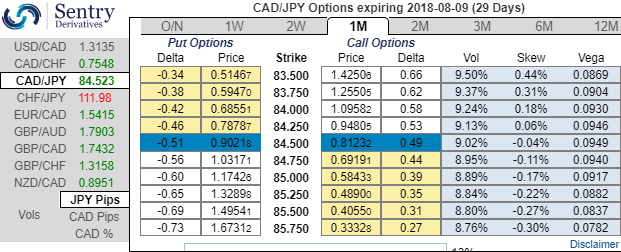 Well, please be noted that the positively skewed ATM IVs of 1m tenors indicate the hedging interests of OTM put strikes upto 83.250 levels, IVs of these tenors are trending between at 8.79-9.5%.