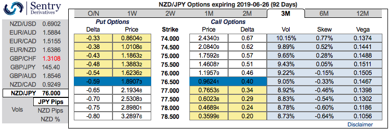 OTC Updates and Options Strategy: To substantiate above bearish stance, the 3m positively skewed implied volatility indicates the hedging sentiments for the lingering bearish risks. Bids are for OTM puts up to 74.000 levels.
