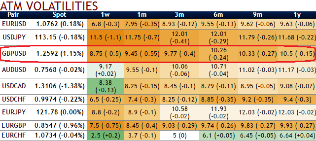 Please be noted that the shrinking and lower implied volatility is observed in GBPUSD within G7 currency space despite BoE lined up for monetary policy on next Thursday: Refer IV nutshell, 1w implied volatility at 8.75%, against 11.5% and 6.8% for the USDJPY and EURUSD respectively), posing it comparatively economical to express a directional USD view through options.
