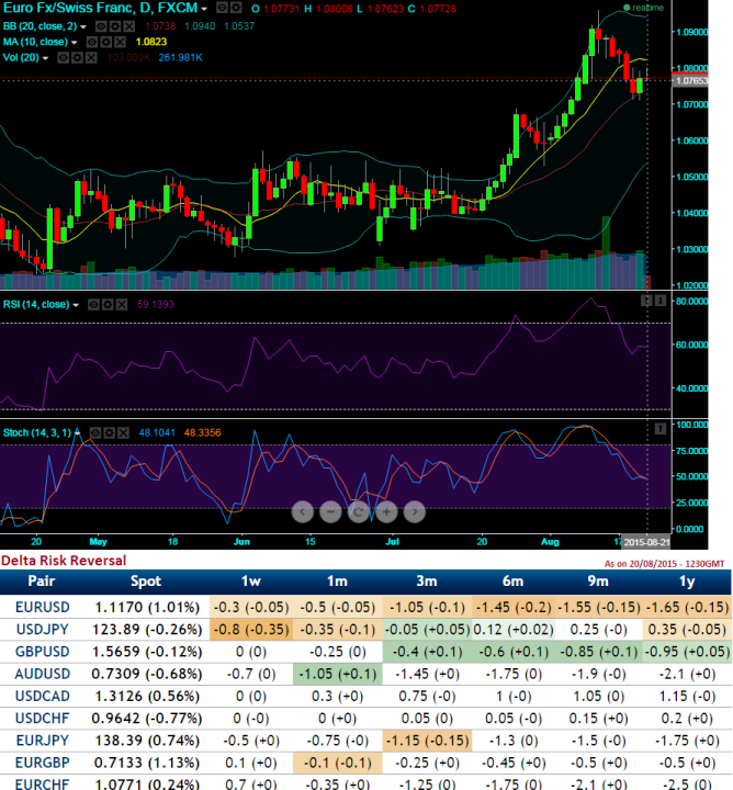 For next 1 week we are projecting short term uptrend for EURCHF as the slight positive flashes of delta risk reversal signifies some sort of upswings on this pair is anticipated as matter of hedging. But for long term view persists over next one year divulges that the expectation of weakness in next future.