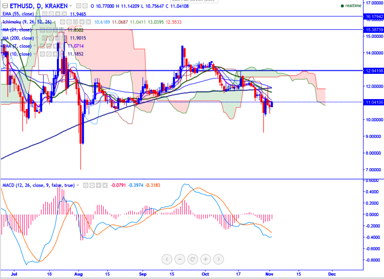 ETH/USD is trading in narrow range between $12 and $9.23 for the past four trading sessions (KRAKEN). It is currently trading around $11.04 at the time of writing.