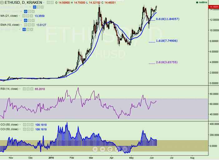 - The pair has broken major resistance $14.40 (May 31st high) and jumped till $14.75 at the time of writing .Ethereum short term resistance is around $14.85 and any violation above will take the till $15.20/$15.75 in the short term.