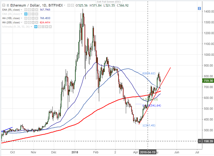 - ETHUSD declined almost more that 15% from the high of $797 made on May 6th 2018. Ethereum was in lime light once again after market rumor is that US regulators are scheduled to discuss whether to treat crypto currency as a security.