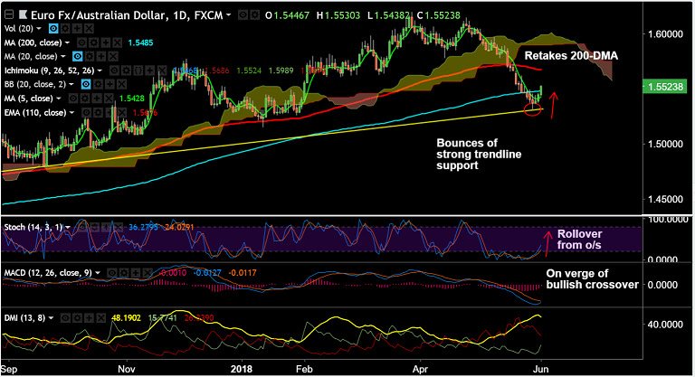 Recommendation: Good to go long on close above 200-DMA, SL: 1.5425, TP: 1.56/ 1.5675/ 1.57