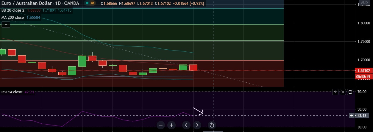 • EUR/AUD declined on Monday as commodity linked Australian dollar was boosted by higher oil prices.