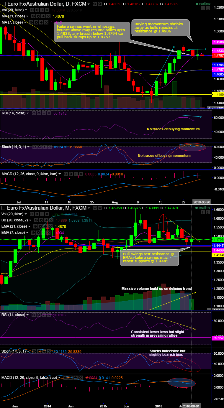 On daily charts, the failure swings have gone in whipsaws, bounce above may resume rallies up to max.1.4833, and any breach below 1.4794 can pull back slumps up to 1.4752.