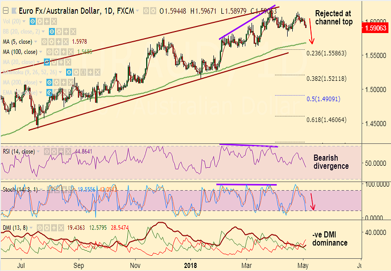 - EUR/AUD breaks below 20-DMA, scope for further weakness.