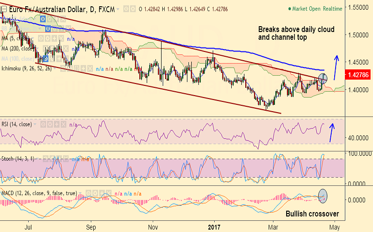 - EUR/AUD has broken and closed above stiff channel top resistance on Wednesday's trade.