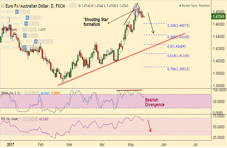 - The pair has formed a 'Shooting Star' pattern at highs on May 5th trade and bearish following candle confirms downside.