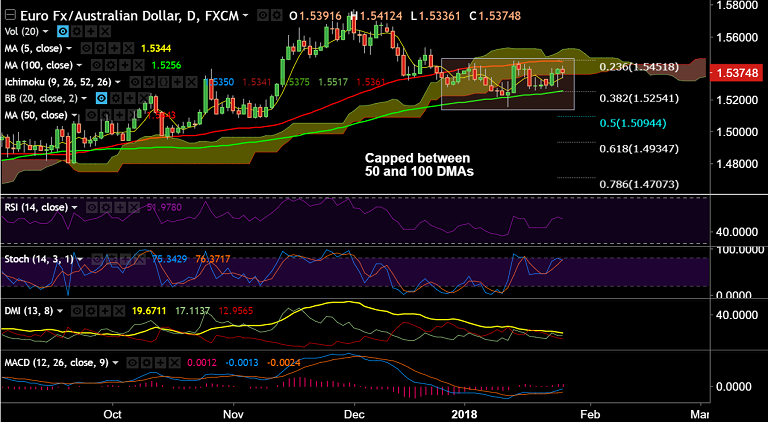 - The pair is trading in a narrow range between 50 and 100 DMA, breakout will provide clear directional bias.