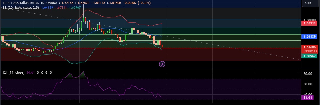• Immediate support is seen at 1.6130 (23.6% fib) and break below could take the pair towards 1.6083 (Lower BB).