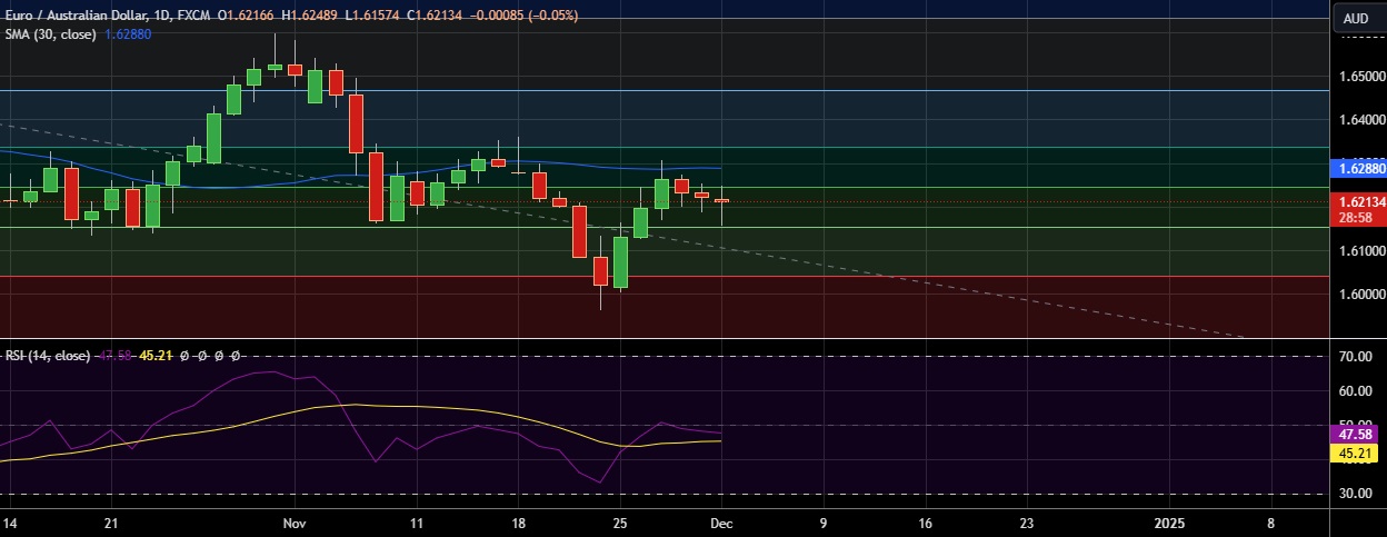 • Strong resistance is located at 1.6245(50% fib), any close above will push the pair towards 1.6288 (30SMA)