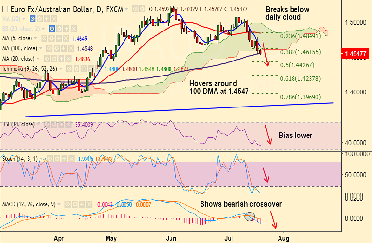- EUR/AUD has broken below daily Ichi cloud, intraday bias lower.