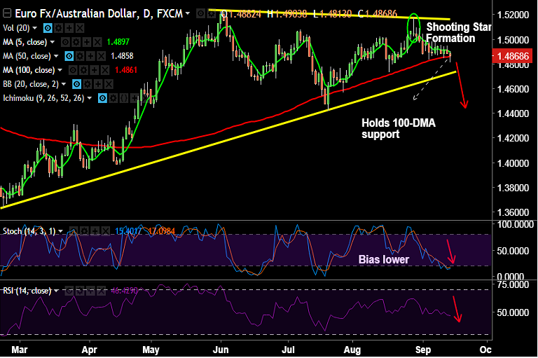 - The pair has retraced dip below 100-DMA at 1.4861 and is currently hovering around 1.4870 levels.