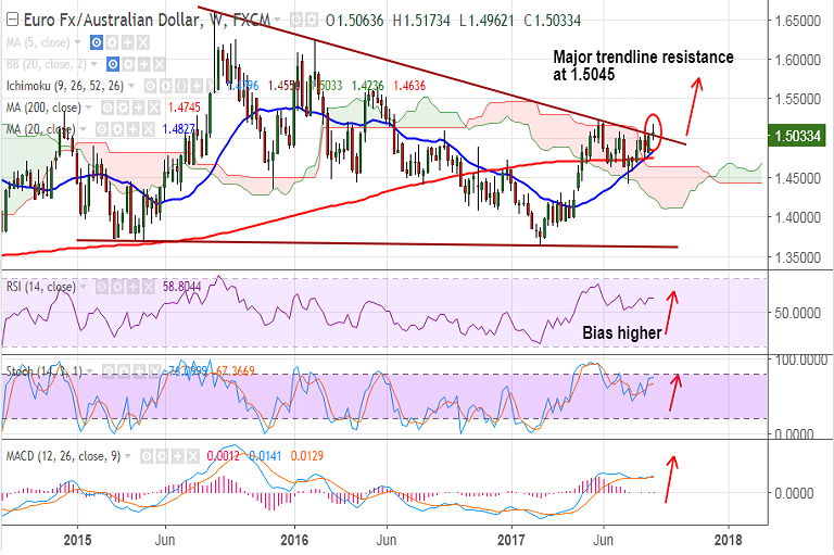 - EUR/AUD edges lower from 12-week highs at 1.5174 to currently trade at 1.5032 levels.
