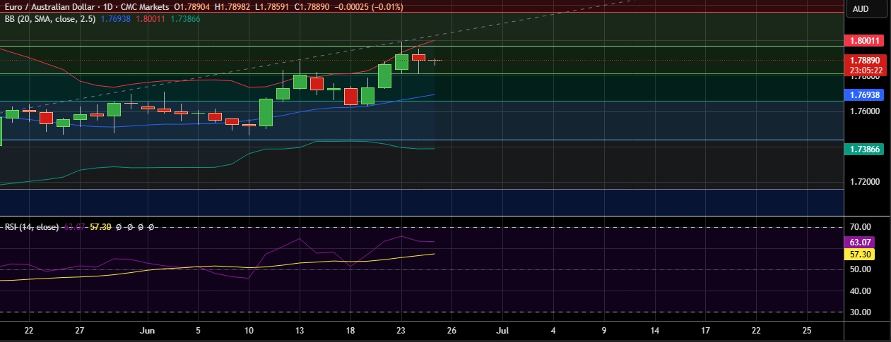 • EUR/AUD eased slightly on Tuesday as investors favored riskier currencies like Australian dollar amid reduced geopolitical fears.