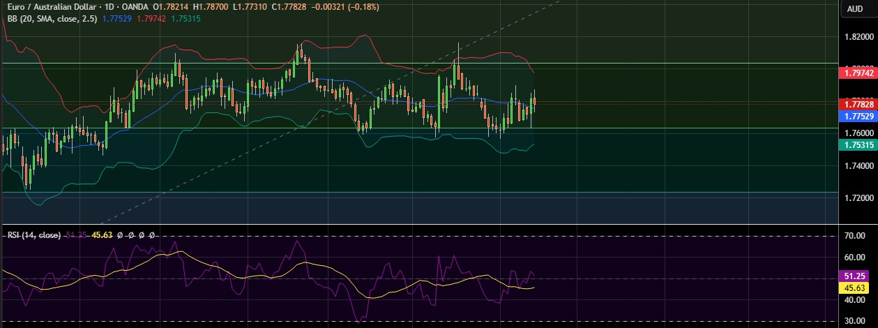 • Immediate resistance is located at 1.7889(Daily high), any close above will push the pair towards 1.7992 (Higher BB).