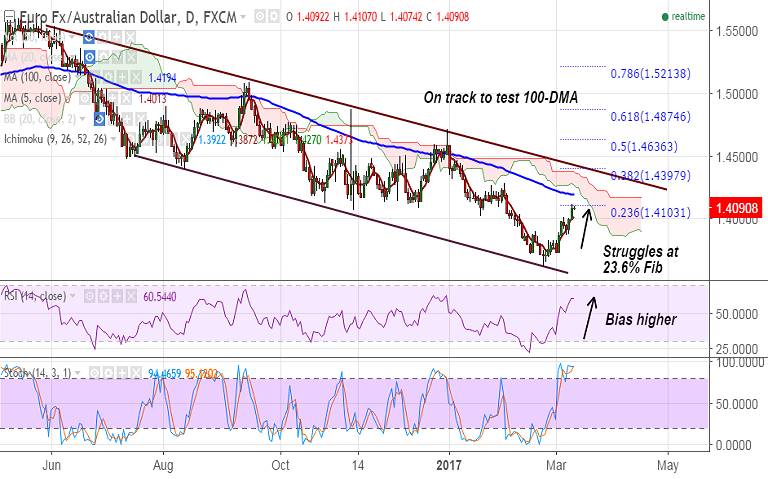 - EUR/AUD is consolidating gains after break above 50-DMA.
