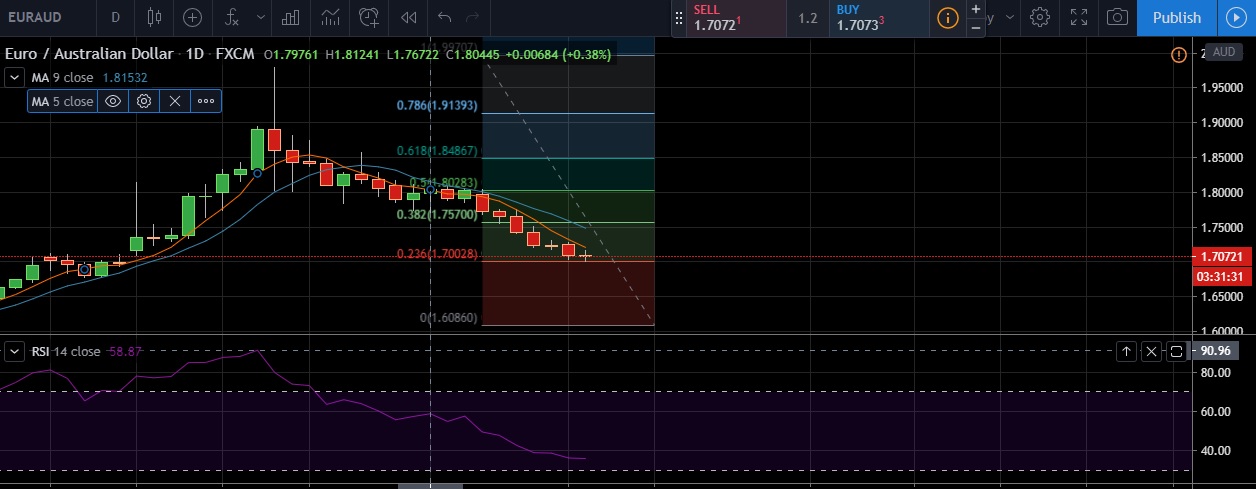 • EUR/AUD dipped on Tuesday as concern about the impact coronavirus will have on the eurozone economy weighed on euro.