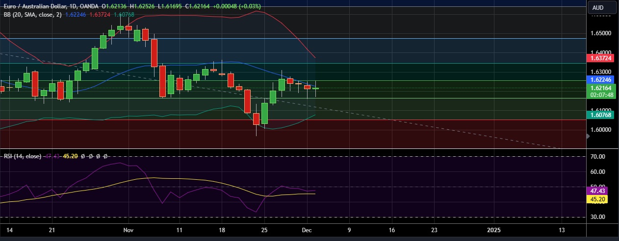 • EUR/AUD was little changed on Tuesday as growing geopolitical tensions weighed on investor risk appetite.