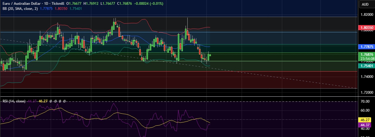 • Support is seen at 1.7559 (38.2% fib) and break below could take the pair towards 1.7534 (Lower BB).