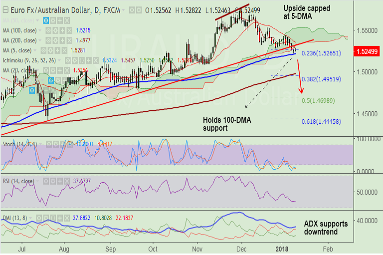 - EUR/AUD has edged higher from 8-week lows at 1.5217, we see Doji formation on daily charts.