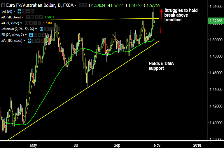 - The pair now finds support at 5-DMA at 1.5185, break below will see weakness. Scope then for test of 20-DMA at 1.5086.