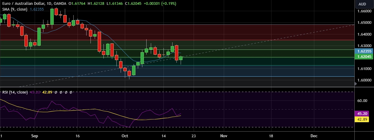 • EUR/AUD gained toeards 1.6235 as euro rose amid short-covering as investor focus turned to euro zone October PMI next week.