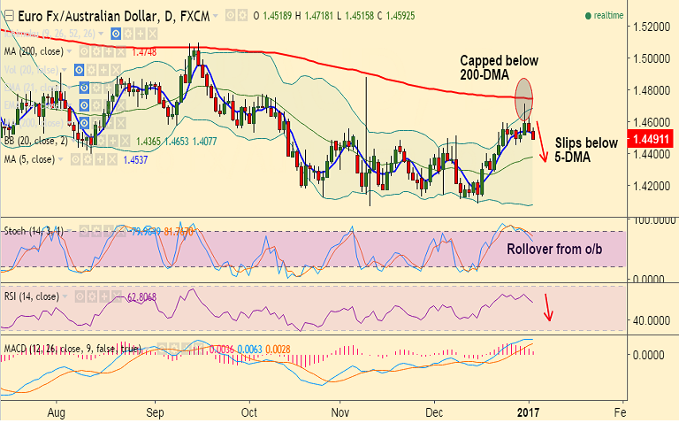 - EUR/AUD was rejected just shy of 200-DMA at 1.4748 on Friday's trade.