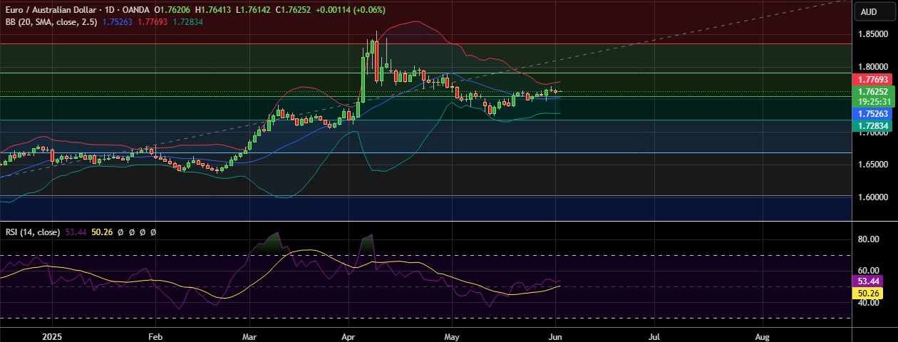 • Immediate resistance is located at 1.7786(Higher BB), any close above will push the pair towards 1.7898(38.2% fib).