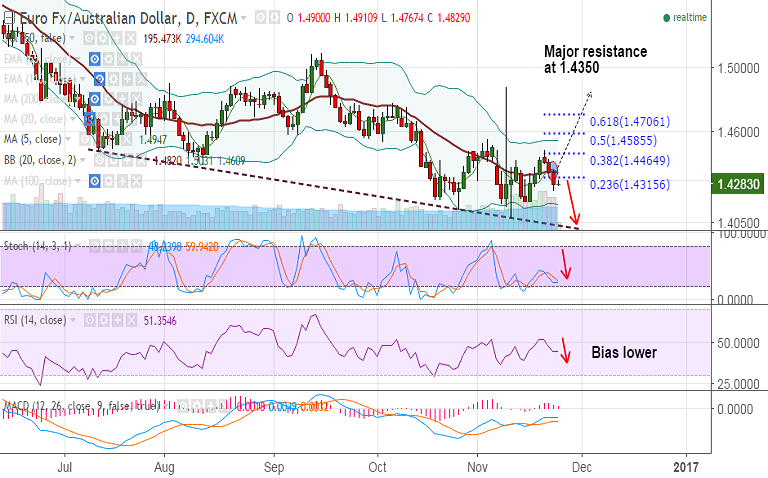 - Our previous call (http://www.econotimes.com/FxWirePro-EUR-AUD-slips-below-20-DMA-good-to-sell-rallies-416986) has hit TP1.