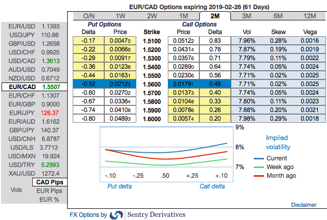 Options Strategy: Contemplating above driving forces and OTC indications, we advocate initiating longs in 2M EURCAD at the money -0.49 delta put, and go long in at the money +0.51 delta call of similar expiry and simultaneously, short 2w (1%) out of the money puts. Thereby, we favor slightly on upside risks as short leg likely to reduce long legs.