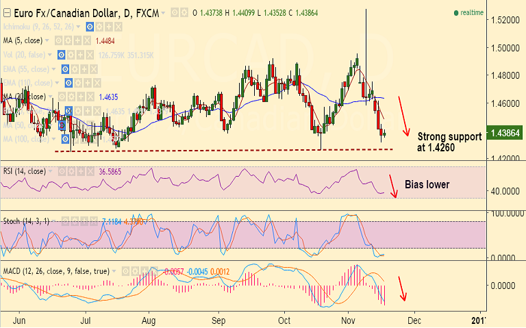 - EUR/CAD hit fresh 1-month lows of 1.4317 on Wednesday.