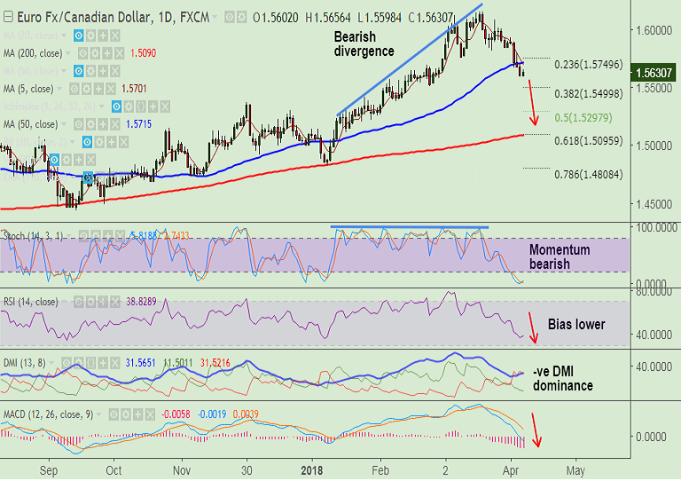 - EUR/CAD has shown a decisive break below 50-DMA, intraday bias lower.