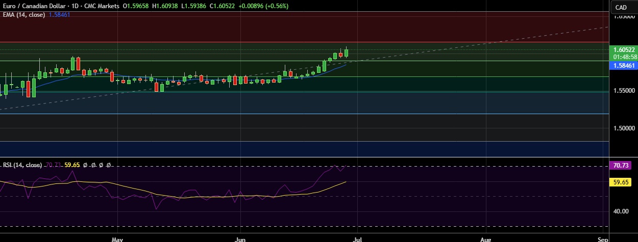 • EUR/CAD rose higher on Friday as the Canadian dollar weakened in response to disappointing domestic growth figures.