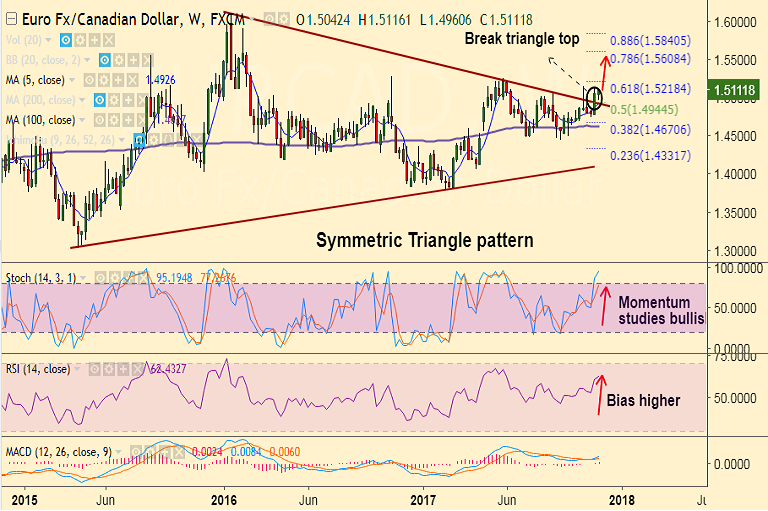 - The pair is extending 'Symmetric Triangle' breakout on the weekly charts.