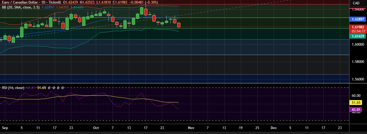 • EUR/CAD fall sharply to hit three week low on Wednesday as the Canadian dollar strengthened following the Bank of Canada’s widely expected 25-basis-point rate cut.