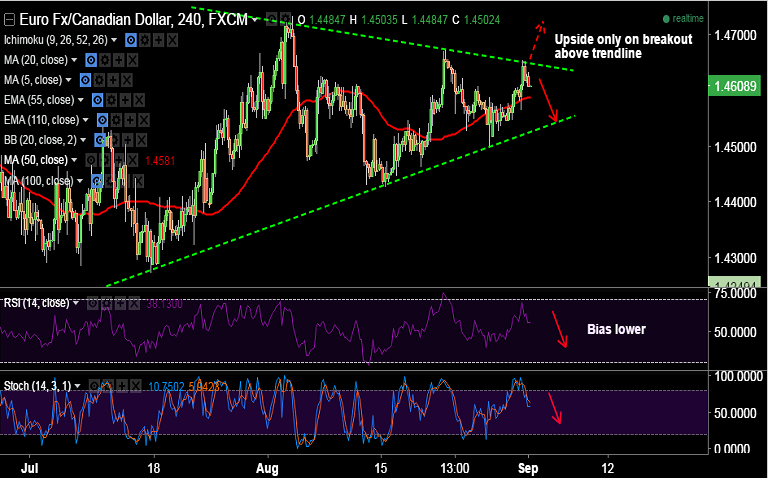 - Major support levels - 1.4588 (4H 50-MA), 1.4555 (20-DMA), 1.4540 (triangle base).