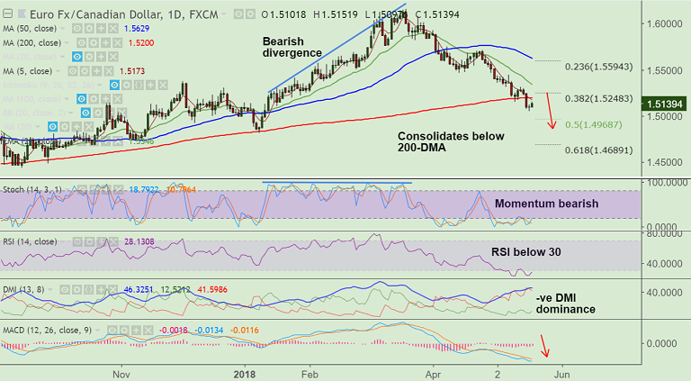 - The pair finds stiff resistance at 200-DMA at 1.52 and we see bearish invalidation only on breakout above.