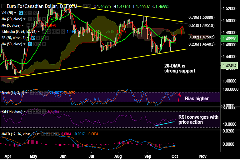 Support levels - 1.4677 (5-DMA), 1.4623 (20-DMA), 1.4540 (200-DMA), 1.4485 (triangle base), 1.4442 (Sept 14 low)