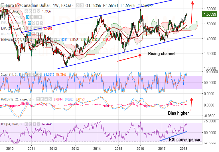 - EUR/CAD trades in a rising channel pattern and we see scope for further upside.