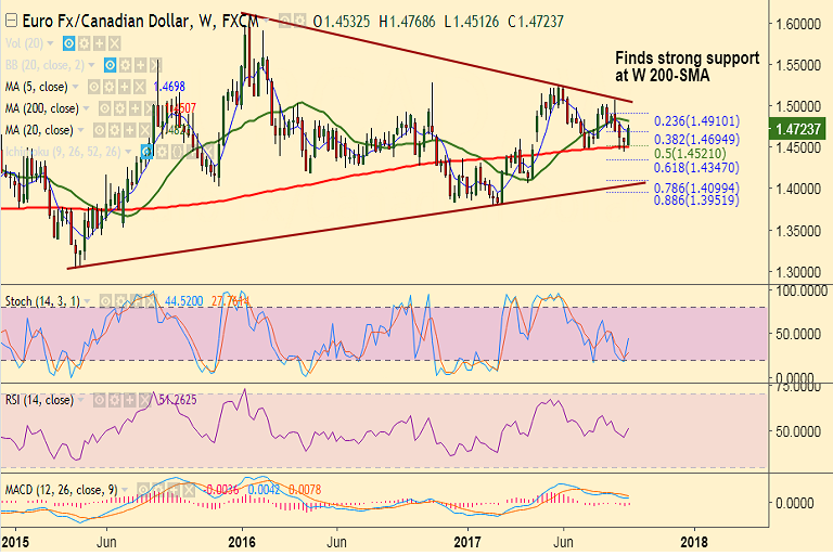 - EUR/CAD has bounced off from weekly 200-SMA which is strong support at 1.4507.