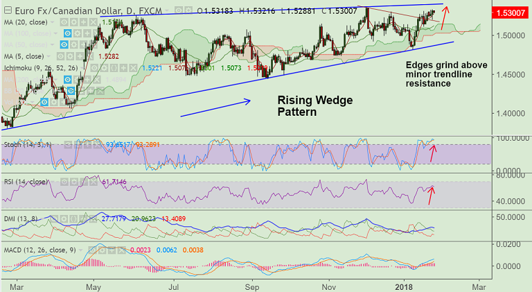 - EUR/CAD grinds higher along 5-DMA support, intrday bias higher.
