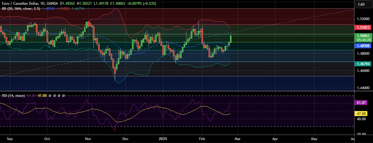 • EUR/CAD rose on Tuesday as Euro was buoyed against loonie after U.S. President Donald Trump said tariffs on Mexico and Canada would proceed as planned.