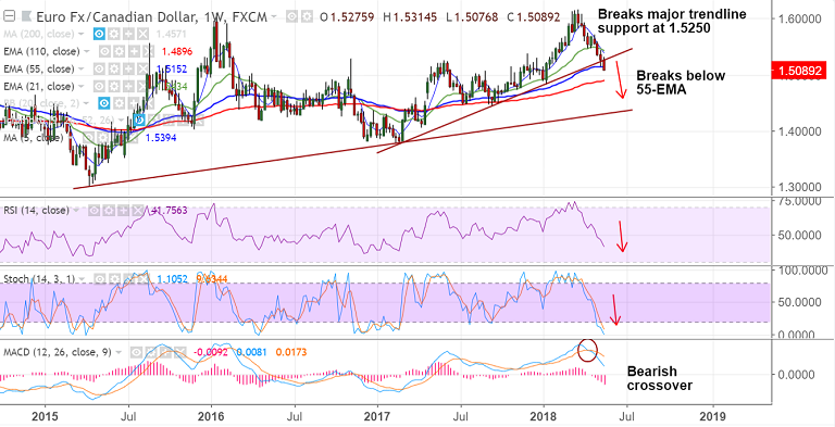 Support levels - 1.4896 (110W EMA), 1.4736 (Nov 2017 low), 1.4442 (Sept 2017 low)