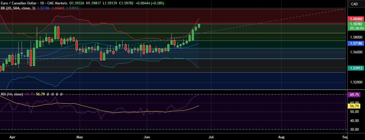 • EUR/CAD rose on Wednesday as the temporary calm brought by the Israel-Iran truce bolstered investor appetite for risk.