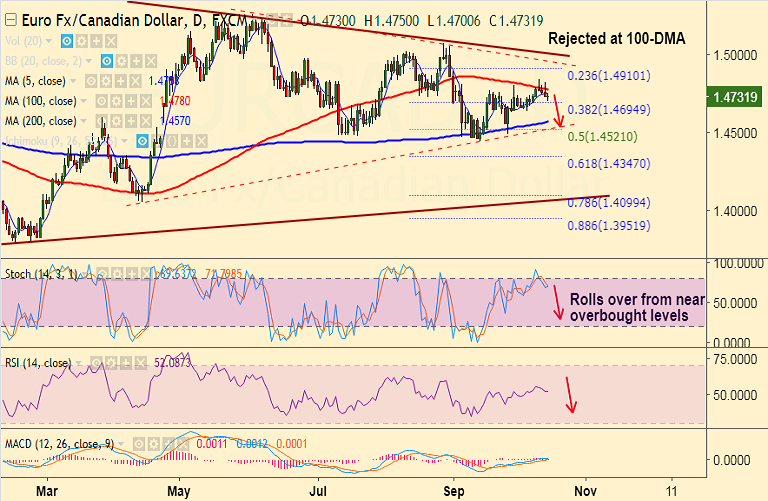 - EUR/CAD slips below 5-DMA after being rejected at 100-DMA in last week's trade.