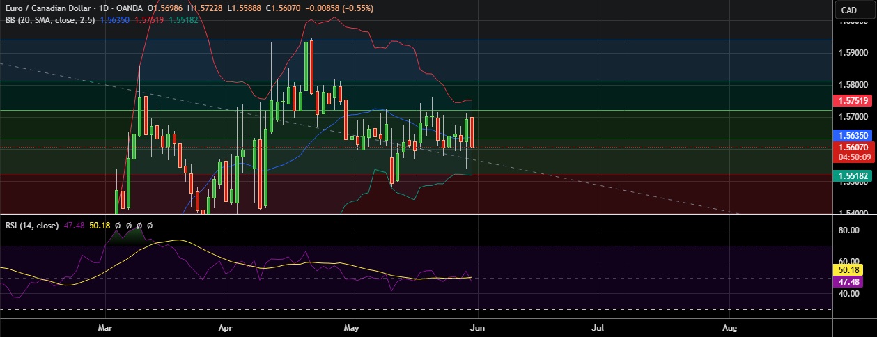 • EUR/CAD declined sharply on Friday after data showed Canada's economy grew faster than expected in the first quarter.