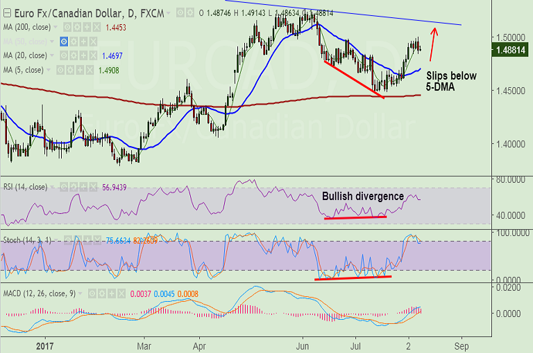 Resistance levels - 1.4908 (5-DMA), 1.50, 1.5105 (May 30 high), 1.5151 (May 5 high), 1.5160 (trendline)