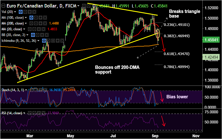 Support levels - 1.4502 (Weekly 200-SMA), 1.4488 (200-DMA), 1.4347 (61.8% Fib of 1.3783 to 1.5258 rally)